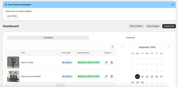 Now you can effortlessly view all your scheduled promotions, dive into your complete promotion history, and stay on top of everything with our integrated calendar view. Plus, connecting all your social accounts is easier than ever, manage your entire social presence from one centralized hub!